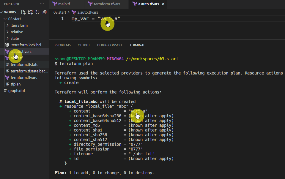 ✔ .tfvars 파일에 변수를 미리 기입하면 변수 값을 하나의 파일에서 관리할수 있는 장점