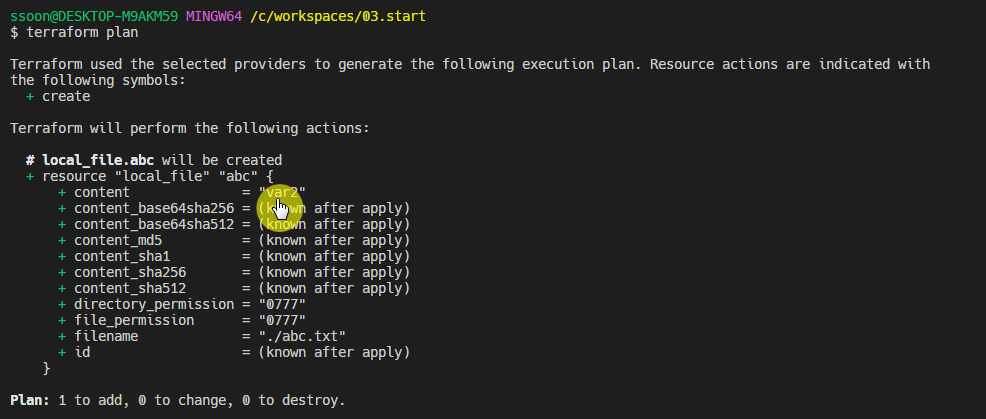 - 입력받은 값으로 terraform plan을 수행합니다.