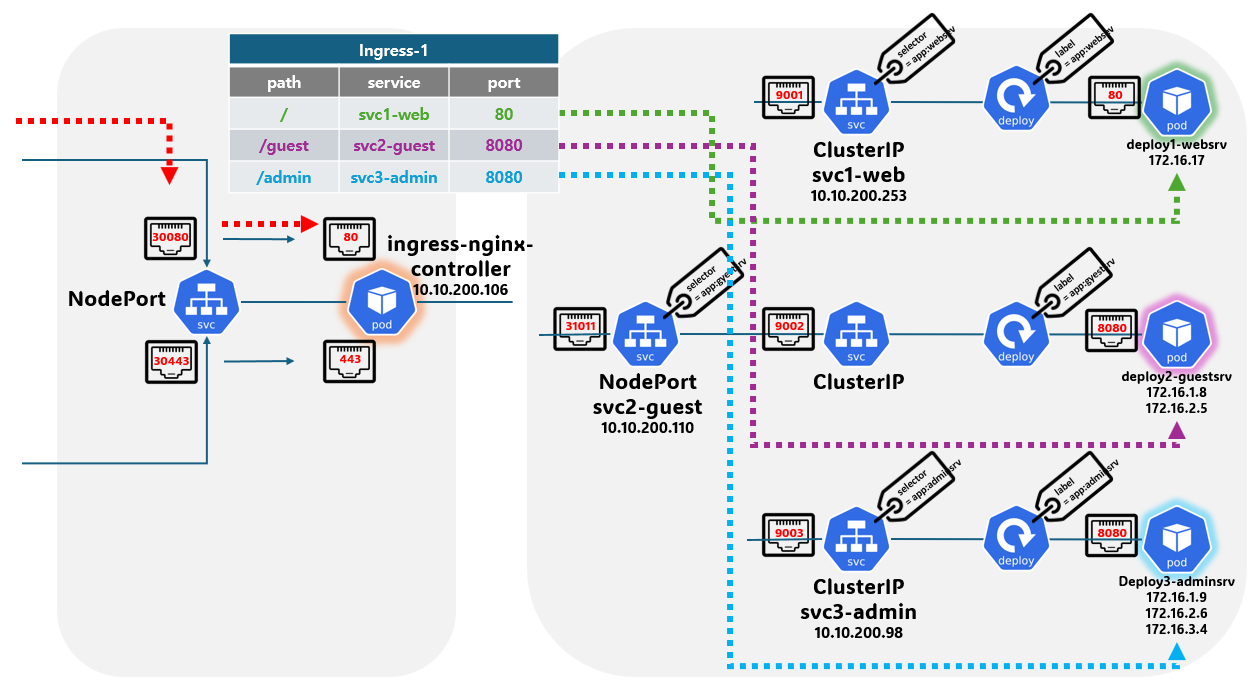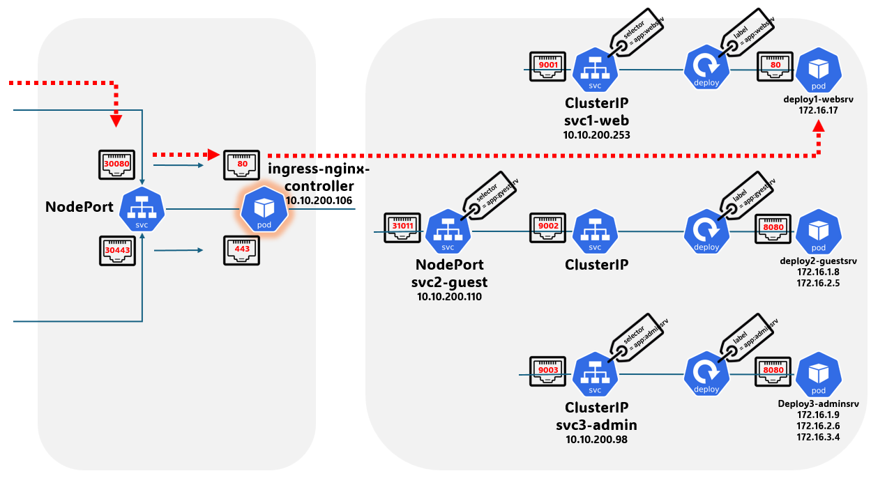 ingress ingress-nginx-controller NodePort 10.10.200.106 <none> 80:30080/TCP,443:30443/TCP 3h30m