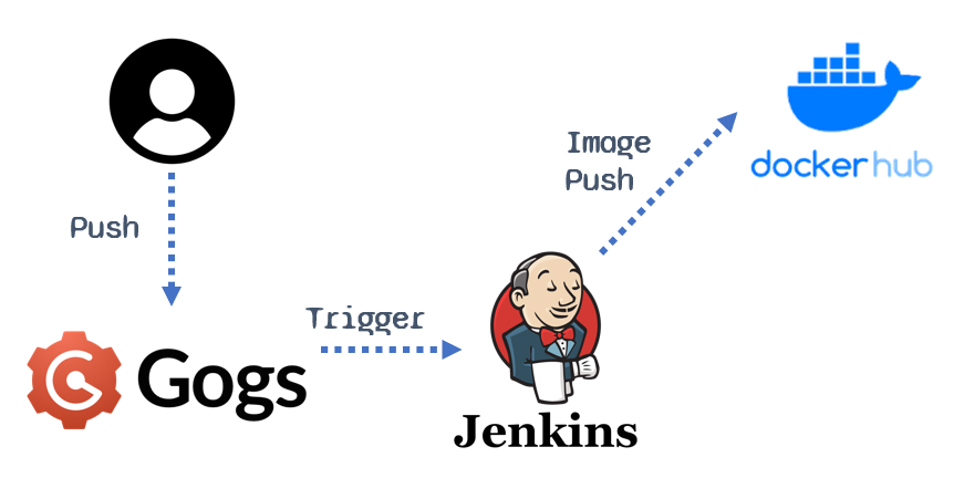 Gogs에서 코드 푸시, 풀 리퀘스트 생성, 또는 다른 이벤트가 발생하면, 이 이벤트를 Jenkins에 알려주는 Webhook이 발동됩니다. - Jenkins에서 Webhook 수신:
