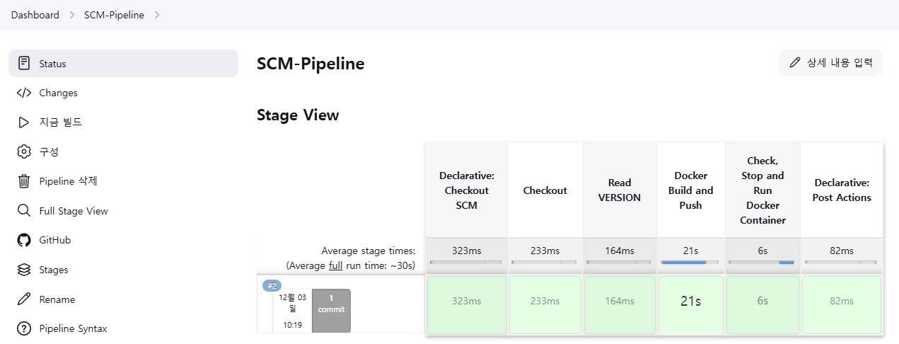 🧿 도커 빌드 후 기존 컨테이너 중지/제거 후 신규 컨테이너 실행 Jenkinsfile pipeline 수정 후 빌드 (SCM-Pipeline)