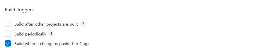 | Build when a change is pushed to Gogs | Gogs 에서 푸시 이벤트가 발생할 때 Jenkins가 자동으로 빌드를 실행합니다. | Gogs Webhook을 통해 푸시 이벤트 발생 시 빌드 트리거 |