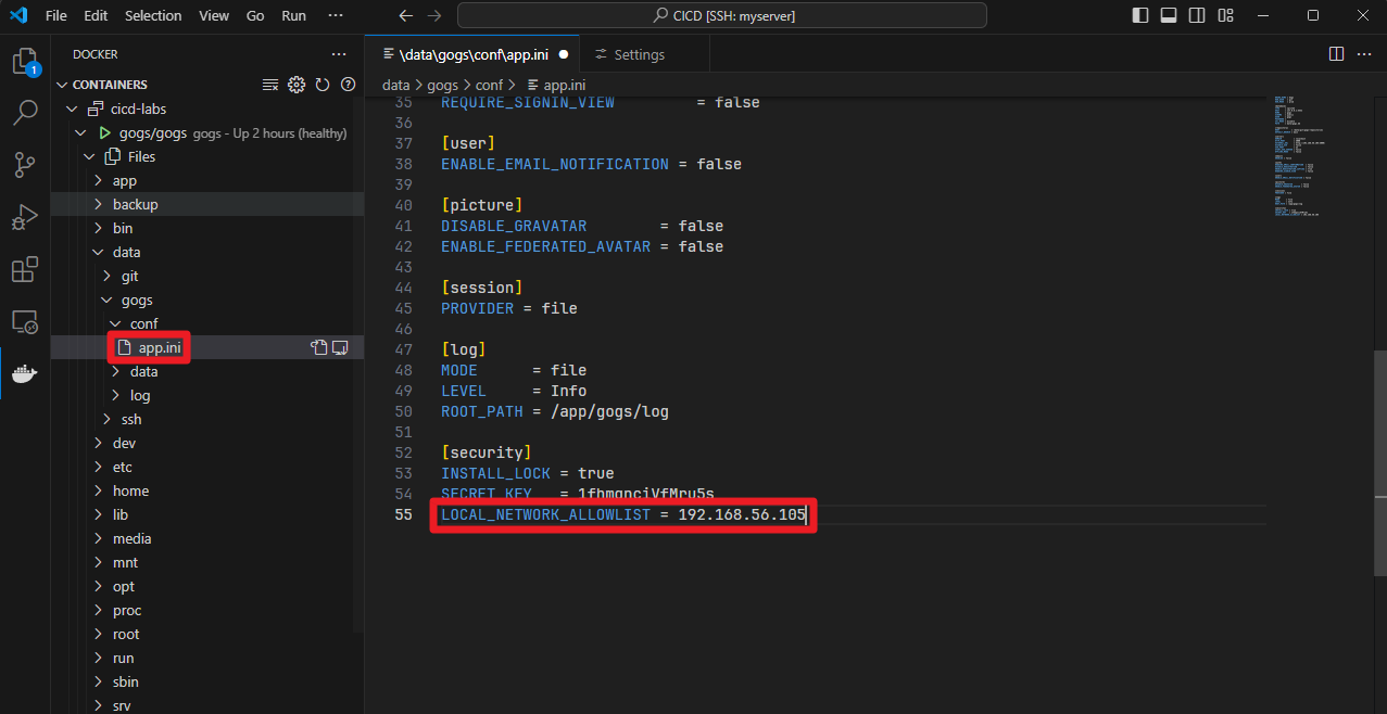 [ssoon@localhost cicd-labs]$ docker compose restart gogs
