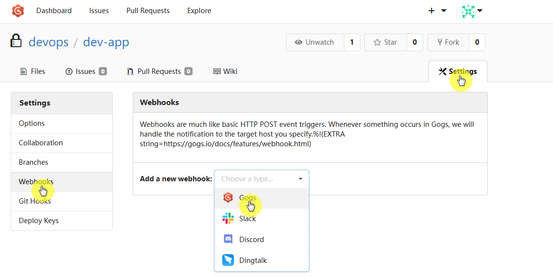 🧿 Gogs Webhooks 설정 : Jenkins Job Trigger