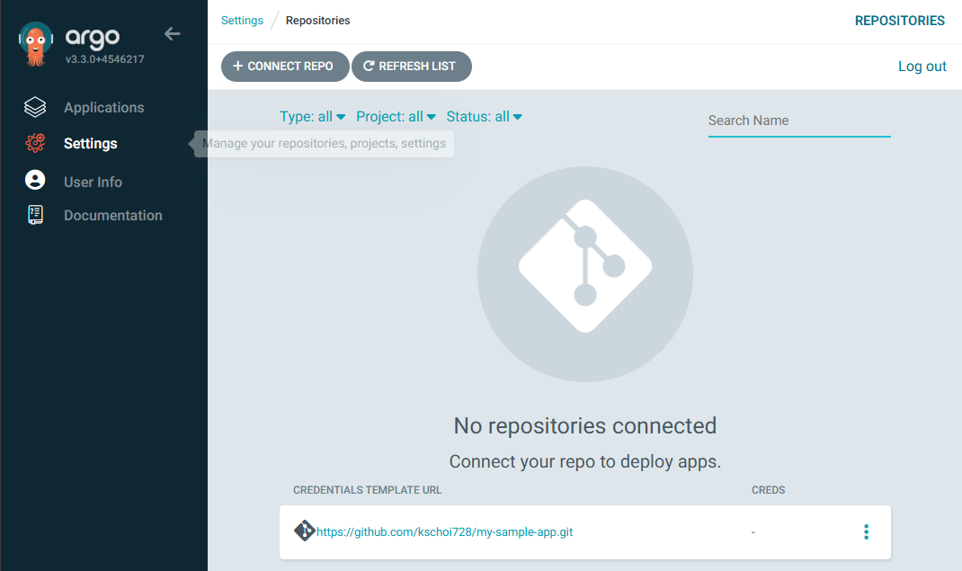 Argo CD UI → Settings → Repo 에 자신의 Repo 추가