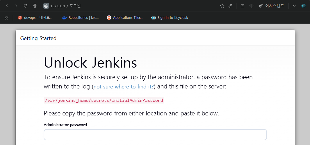 (⎈|kind-myk8s:vault) ssoon@DESKTOP-72C919S:~$ docker compose exec jenkins cat /var/jenkins_home/secrets/initialAdminPassword