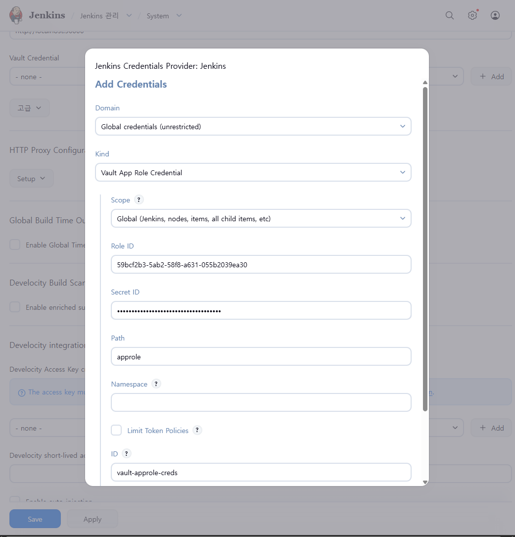 - Jenkins HashiCorp Vault Plugin 사용(Controller에 설정)