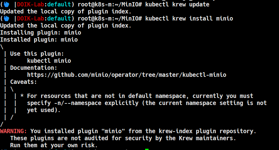 kubectl krew를 실행하여 설치를 확인하십시오.