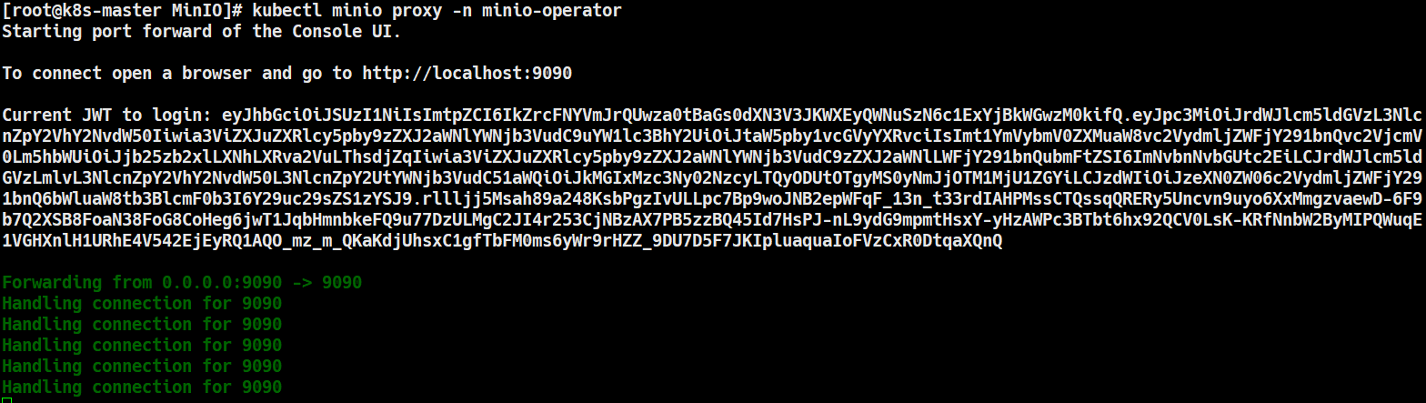 다음 명령을 실행하여 MinIO Operator 로컬 프록시를 만듭니다.